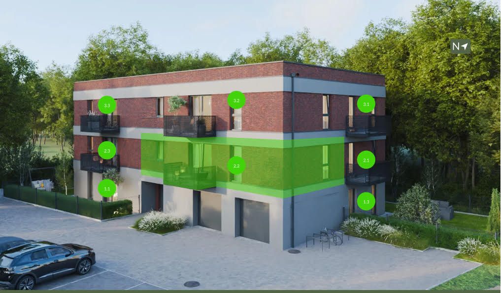 - zewnętrzne miejsca postojowe oraz dwa garaże w bryle budynku